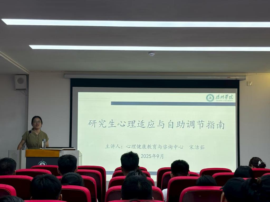 9月9日晚,心理健康讲座在健行楼215报告厅举办。心理健康教育与咨询中心宋洁茹老师作“研究生心理适应与自助调节指南”专题讲座,引导新生认识到研究生阶段在心理层面的跨越提升。现场通过搭建“困难与情绪表达”小组、进行“学习与生活”情景表演等形式,提前帮助新生纾解科研压力,科学有效地进行时间管理。宋洁茹为研究生新生传授了“正念减压”“情绪ABC理论”“时间管理四象限法则”等调适方式,帮助新生掌握应对科研压力和生活挑战的方法。